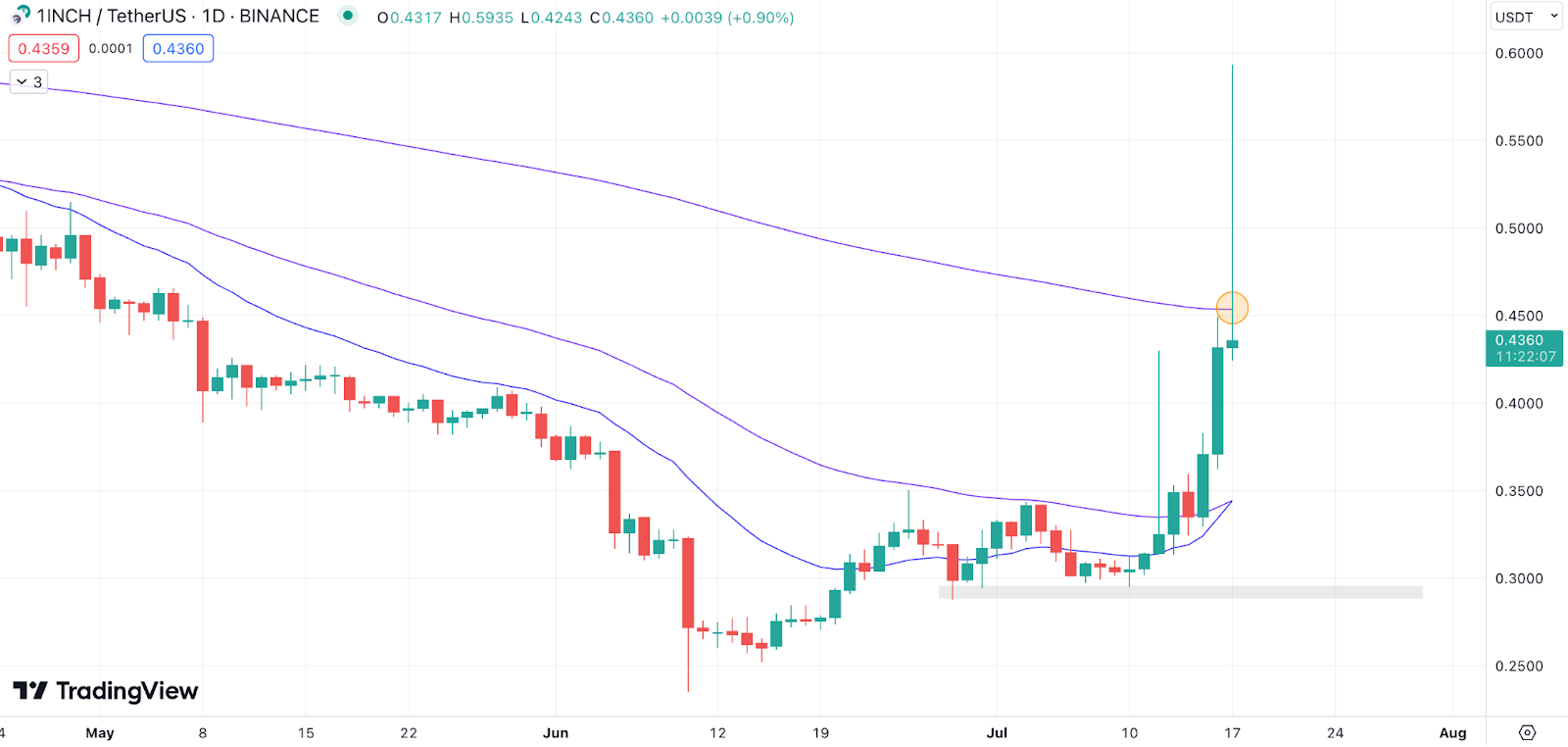 $1INCH Explodes Higher as Bulls Take Over