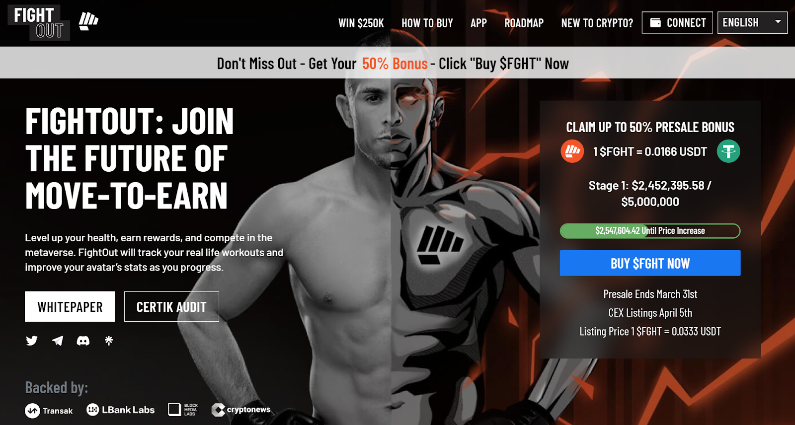 What’s more, the FightOut presale is unusually generous in offering early investors bonuses of up to 50%.