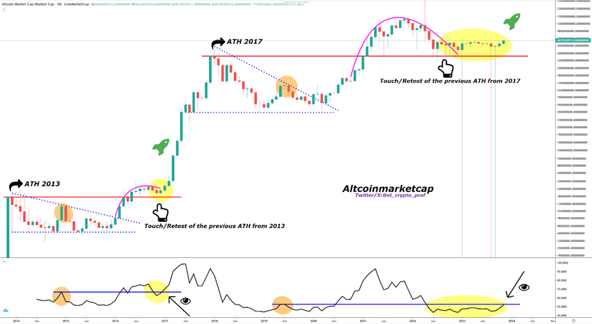 “It’s time for altcoins to break through the blue line in the RSI. We have seen this scenario before in 2016, only in a shorter time frame. Back then, this was the signal for the strongest altcoin rally the market has ever seen.”