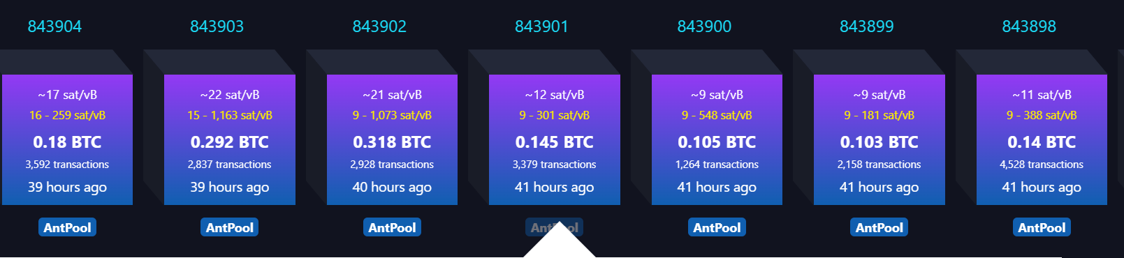On May 17, AntPool mined seven consecutive blocks between block heights 843,893 and 843,904 in one hour and thirty-eight minutes.