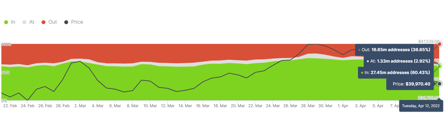 Meanwhile, another crucial point to note is the resilience of the Bitcoin HODLers (Holding On for Dear Life) in the market. Data by IntoTheBlock revealed that around 58% of the holders have held the largest coin for over a year, while around 34% of holders have held it for a period 1 month to 12 months. The rest of the composition appears to be that of short-term traders. Having said that, Glassnode had also noted in its weekly analysis that the network profitability has improved in the HODLer-dominated market, thus, indicating “significant re-accumulation.” These are usually the buyers who remain ‘In The Money’.