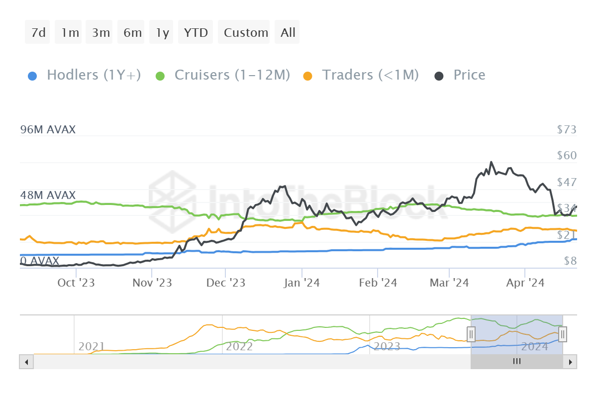 Avalanche’s price notes the potential for growth owing to the rise in conviction observed among AVAX holders. This is evident in the supply shift from small and mid-term holders to long-term holders, known to sit on their supply for at least a year.