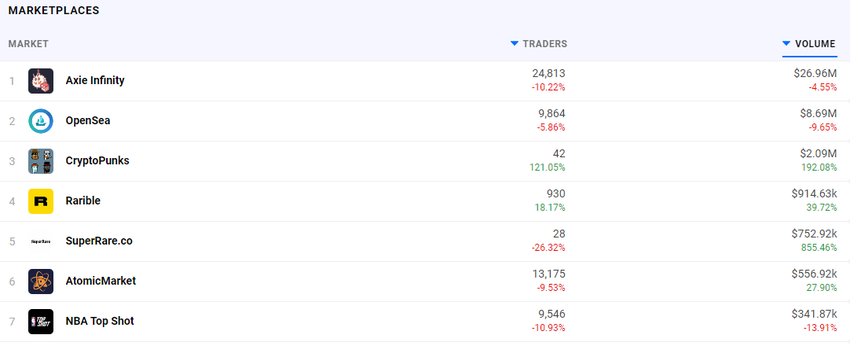 According to DappRadar, AXS has managed over $571 million in volume over the last thirty days. More than double the second place NFT marketplace of OpenSea. In the last twenty-four hours alone, AXS has managed $26.96 million in trading volume, with OpenSea managing a third of that with only $8.69 million.