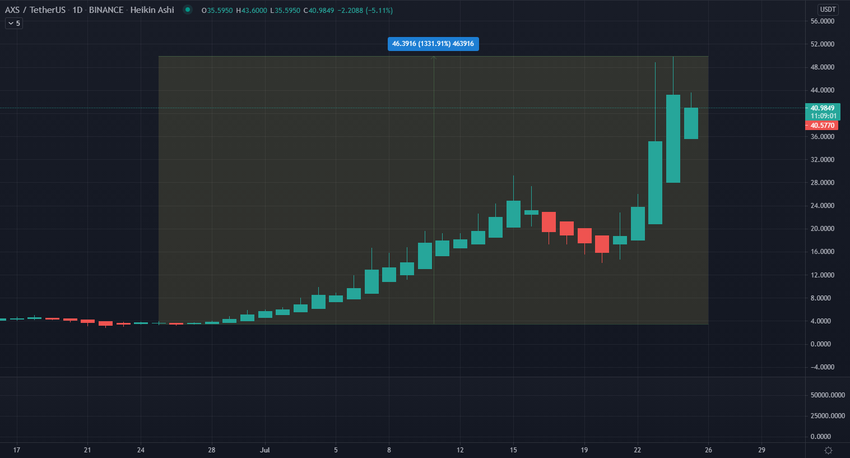 Axie Infinity continues to soar to new heights as the project’s token AXS, recently hit $49.20. The NFT project has seen its price surge from $3.50 up to its recent high, all within one month.