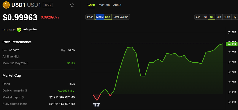 New US legislation lays the groundwork for regulated stablecoin adoption under the GENIUS Act. In the same way, it sets the stage for a Trump-affiliated dollar-backed stablecoin, USD1, which has already amassed a $2.2 billion market cap.