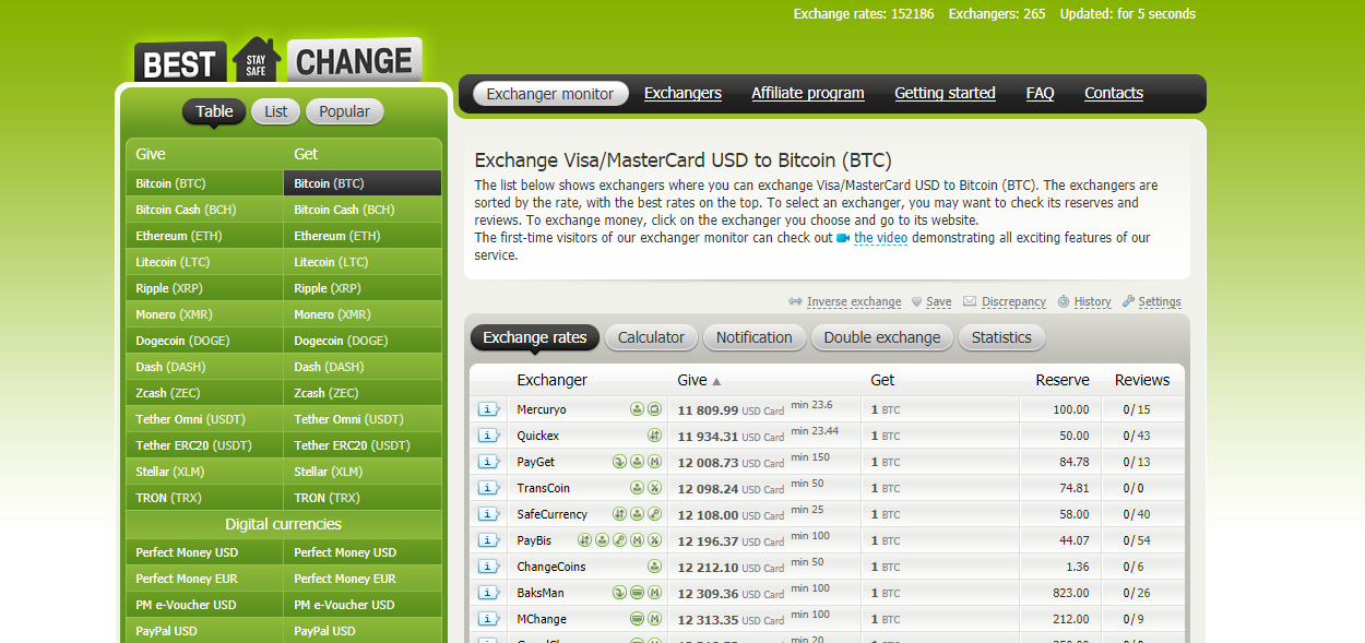 As an exchanger aggregator, BestChange.com pools a wide list of cryptocurrency and e-currency exchanges in order allowing users to select the most suitable exchanger for themselves.