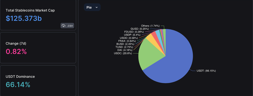 USDT is the largest stablecoin with a market domination of 66.14%. Whereas FDUSD has a dominance of 0.28%.