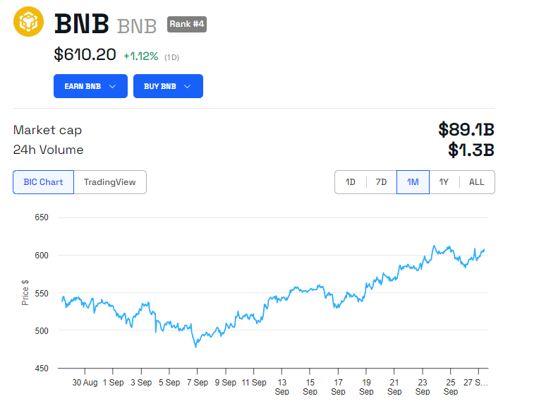 Meanwhile, BNB has increased by 1.12% since the opening of Saturday’s session. As of this writing, it is trading for $610.20.