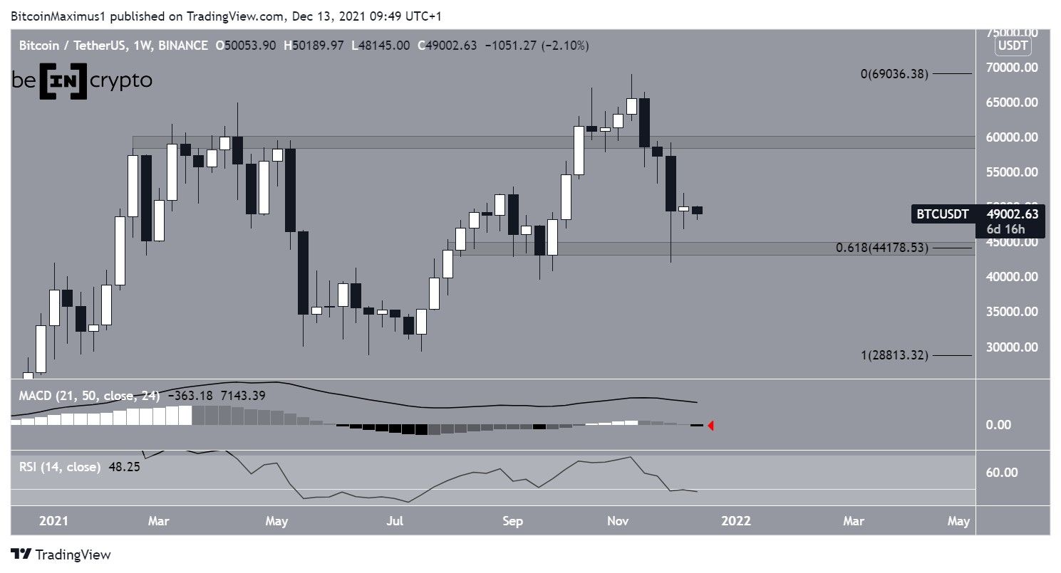 However, BTC is still trading above the 0.618 Fib retracement support level of $44,200. This is also a horizontal support area.