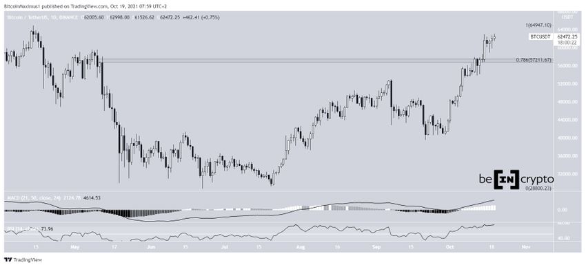 Bitcoin (BTC) is rapidly approaching its final resistance area and is currently less than $2,000 below the all-time high price. While technical readings are still bearish, the wave count indicates that BTC is approaching the top of its upward move.