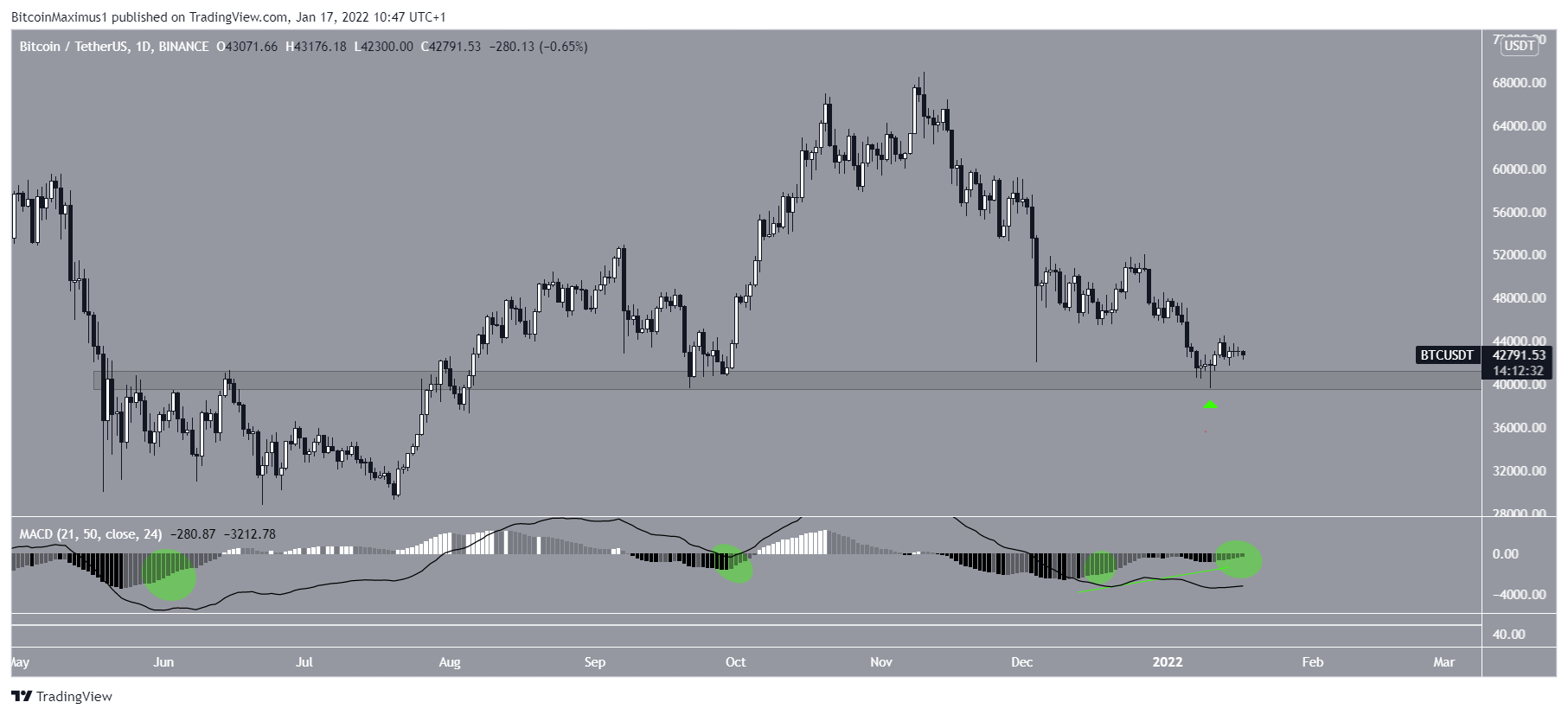 However, BTC is still trading above the long-term horizontal support at $40,500.
