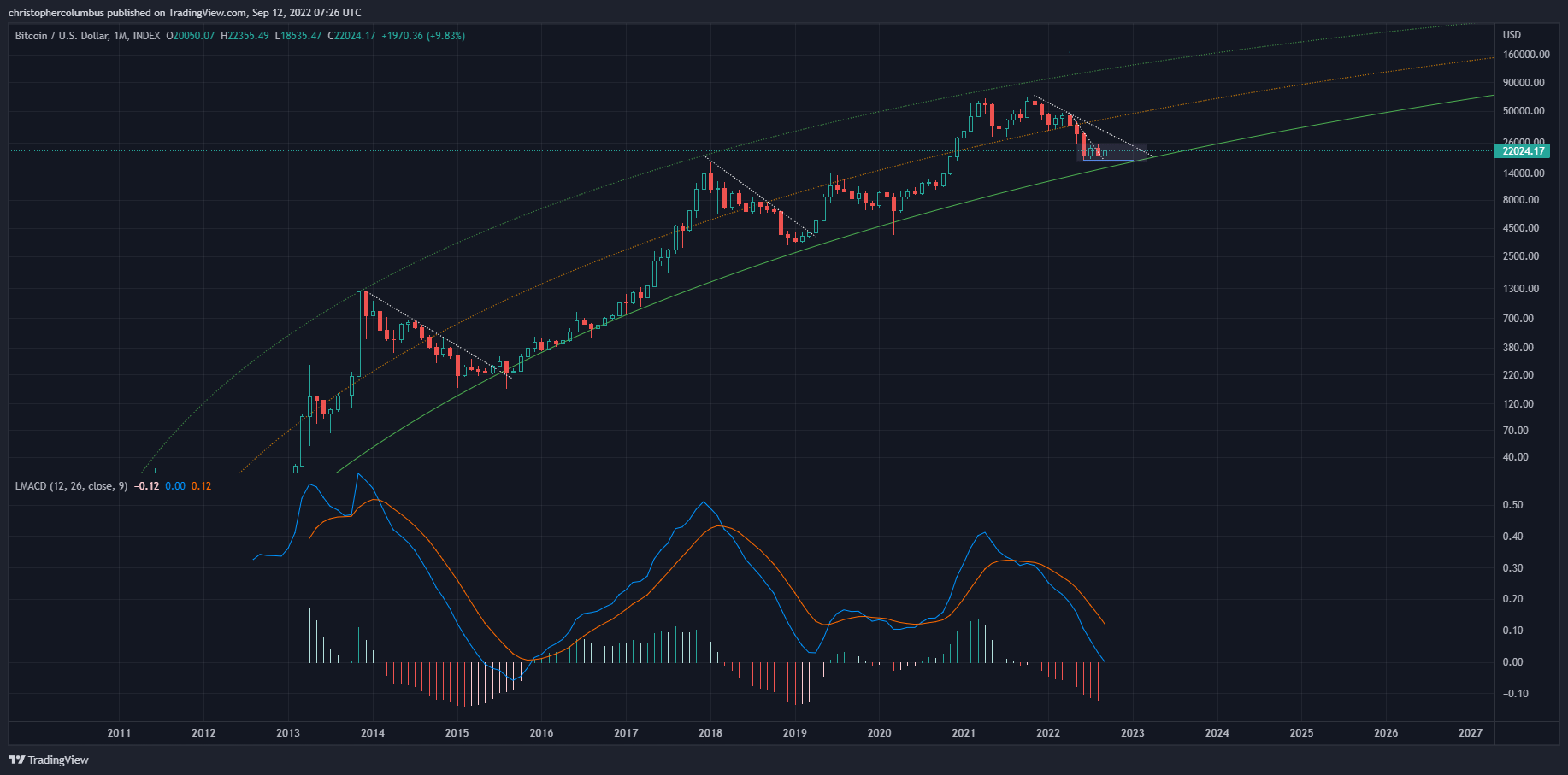 Well-known cryptocurrency trader @davthewave tweeted a chart of BTC which shows that the price is hovering inside a long-term buy area. Moreover, the monthly histogram is close to generating a bullish contraction, even though there is still time until the monthly close.