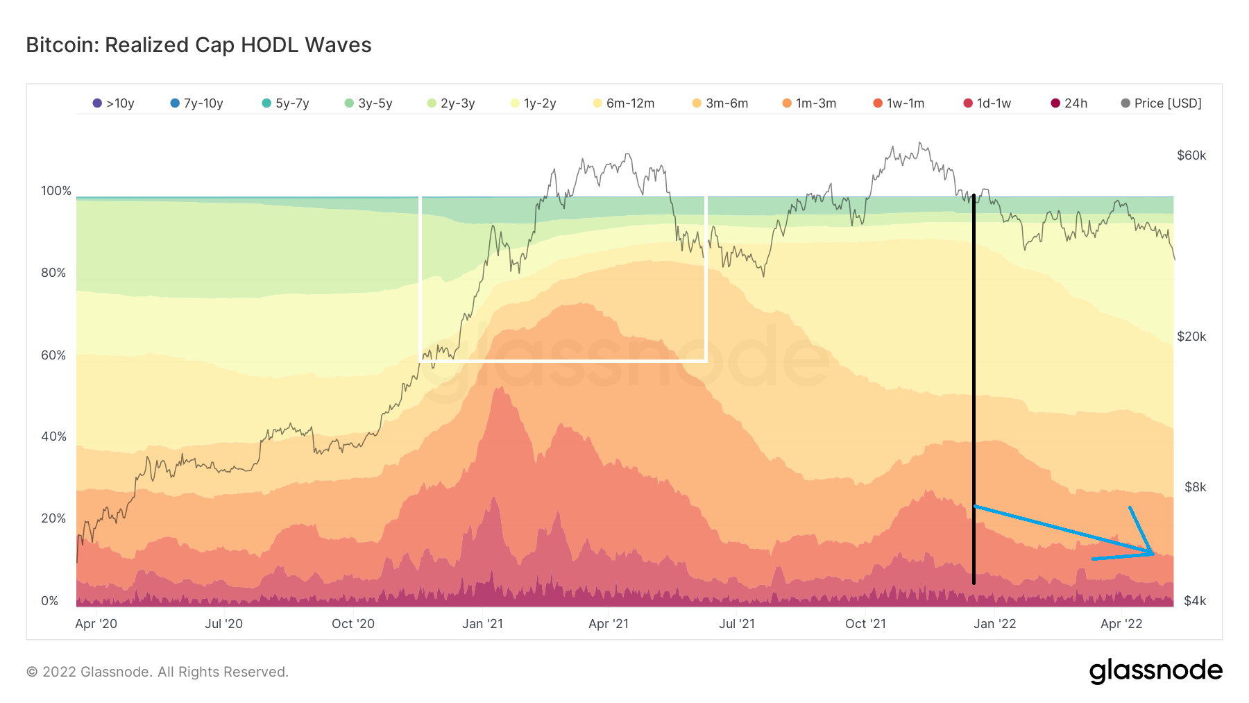 Therefore, people who bought between Dec 2020 and May 2021 (white circle) have held and their tokens have since passed into the one to two-year band.