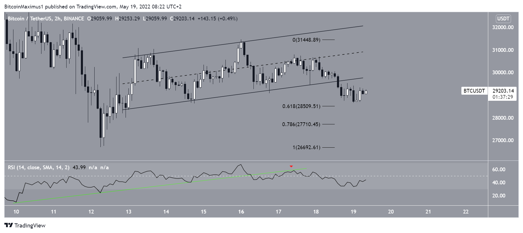 BTC decreased considerably on May 18, creating a bearish engulfing candlestick in the process. The price reached a daily close of $28,715, which is the lowest since Dec 2020. Â