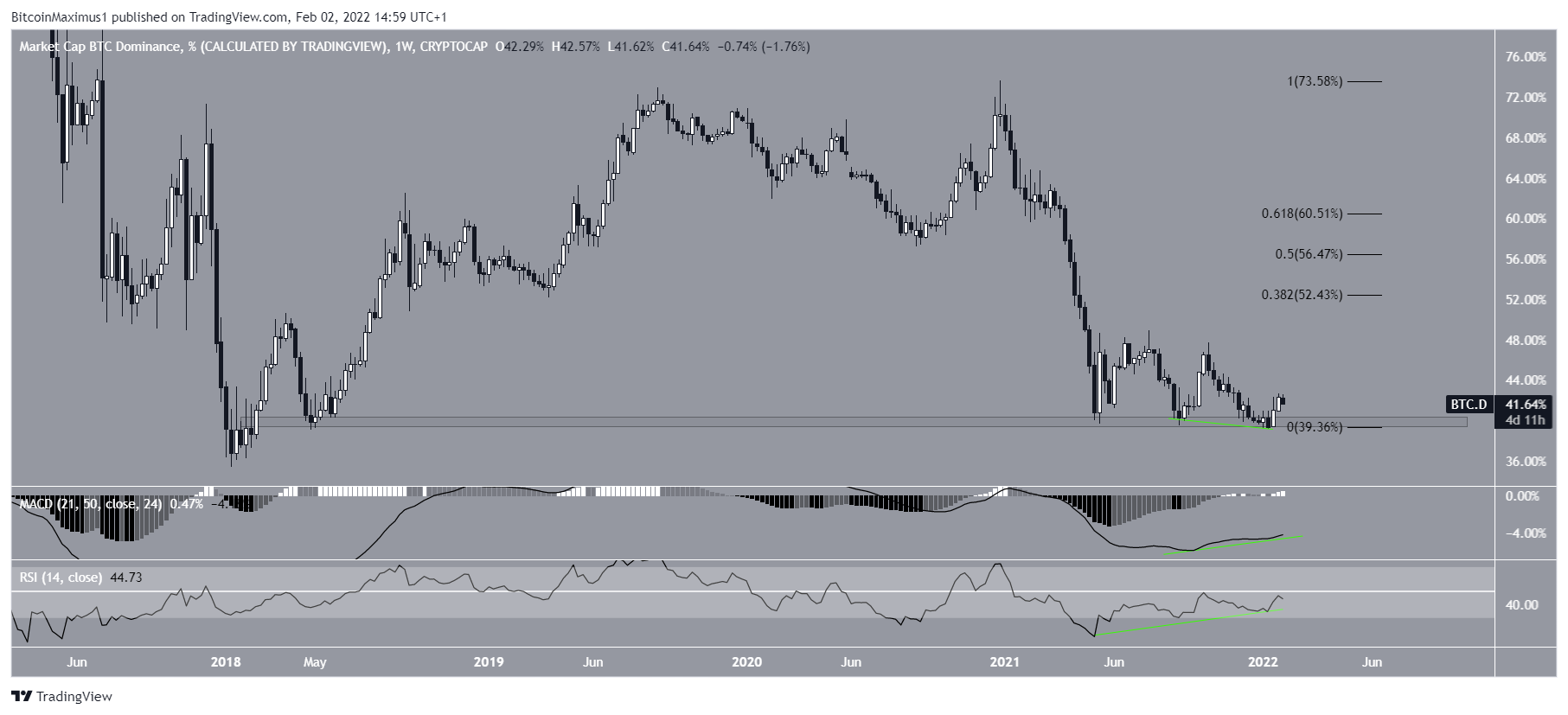 BTCD had been trading above the 40% horizontal support area since May 2021. The area was the catalyst for the initiation of several upward movements.