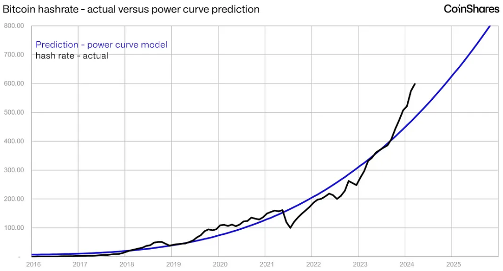 Fluctuations in the hashrate—the combined computational power used in mining and processing Bitcoin transactions—further complicate the mining landscape. Post-halving forecasts predict that the hashrate will eventually climb to 700 exahash by 2025, although an immediate 10% drop is expected as less profitable mining operations go offline.