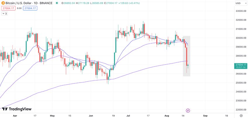 Bitcoin’s price dipped nearly 10% yesterday, touching the $26,000 mark – a level that hadn’t been seen since June 16.