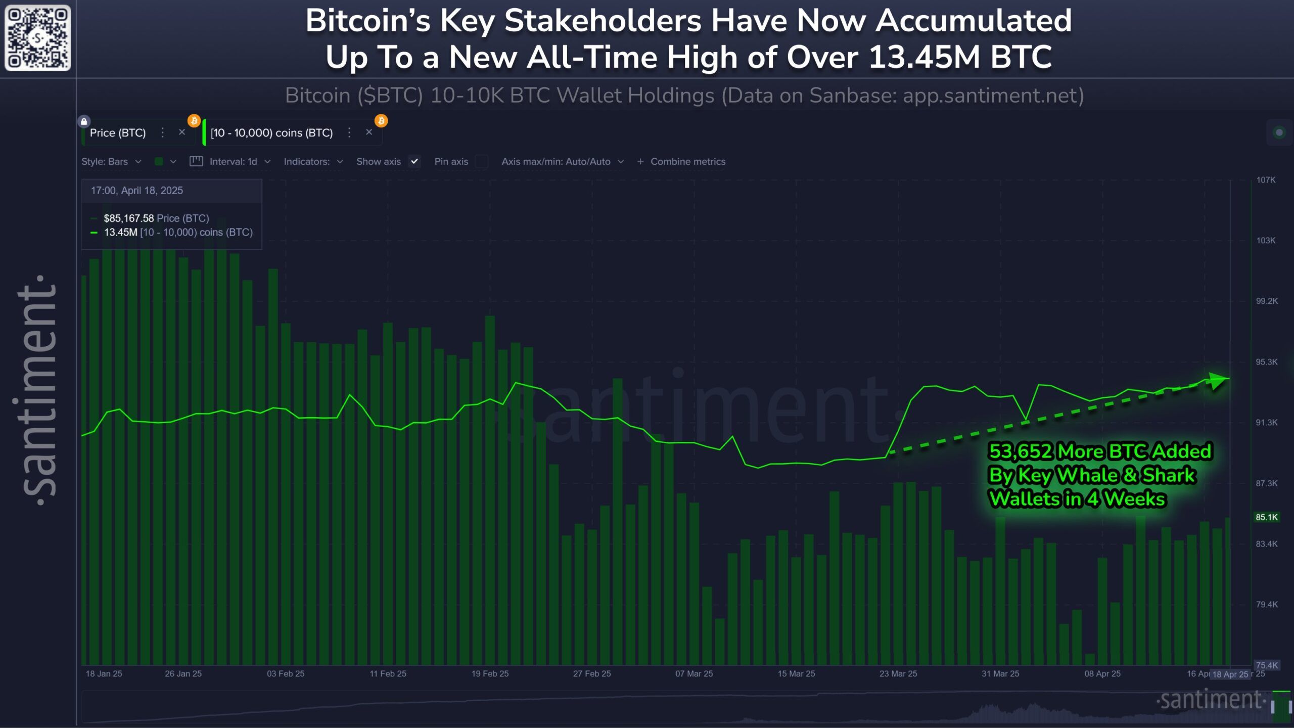 Whale and shark addresses, which hold between 10 and 10,000 BTC, have been actively accumulating Bitcoin at lower price levels. Over the past month, these addresses have purchased approximately 53,652 BTC, worth nearly $4.7 billion. This buying spree indicates that large investors are taking advantage of Bitcoin’s recent dip, believing in the asset’s long-term potential.
