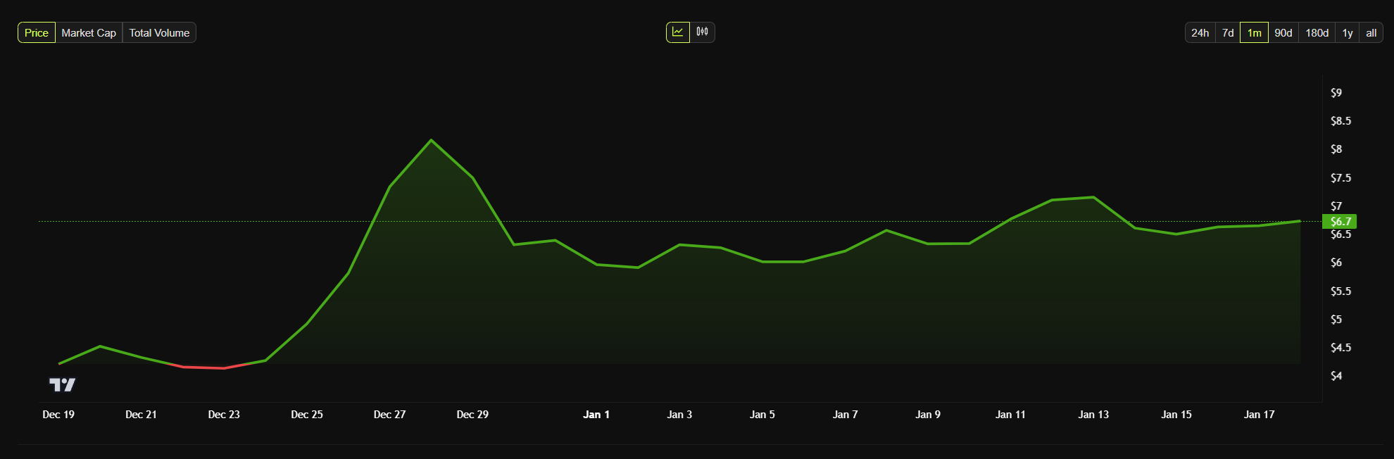 Bitget Token (BGB) Monthly Price Performance. Source: BeInCrypto