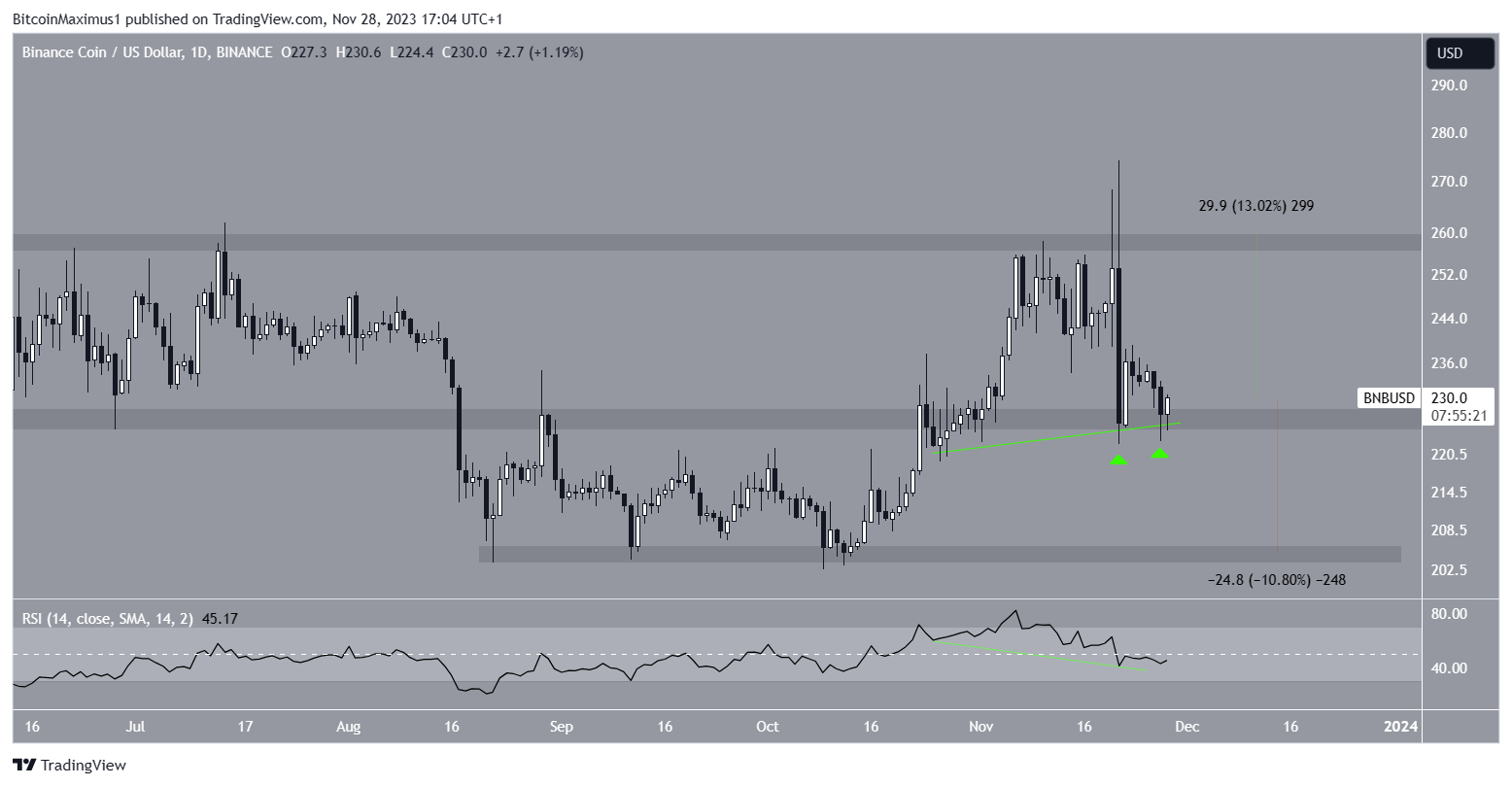 Despite the decrease, the BNB price trades above a minor horizontal support area. Will it be enough to stop the bleeding?