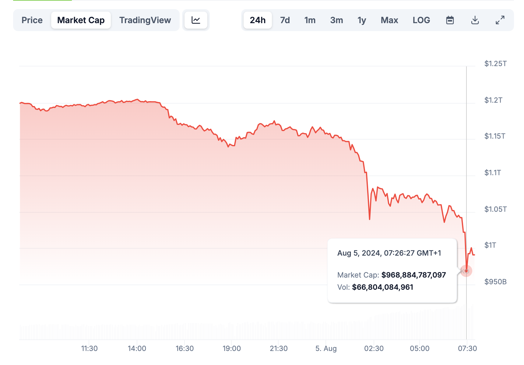 As a result of this development, Bitcoin’s market cap, which was $1.37 trillion on July 29, fell below $1 trillion before a recent rebound saw the value jump above the threshold again.