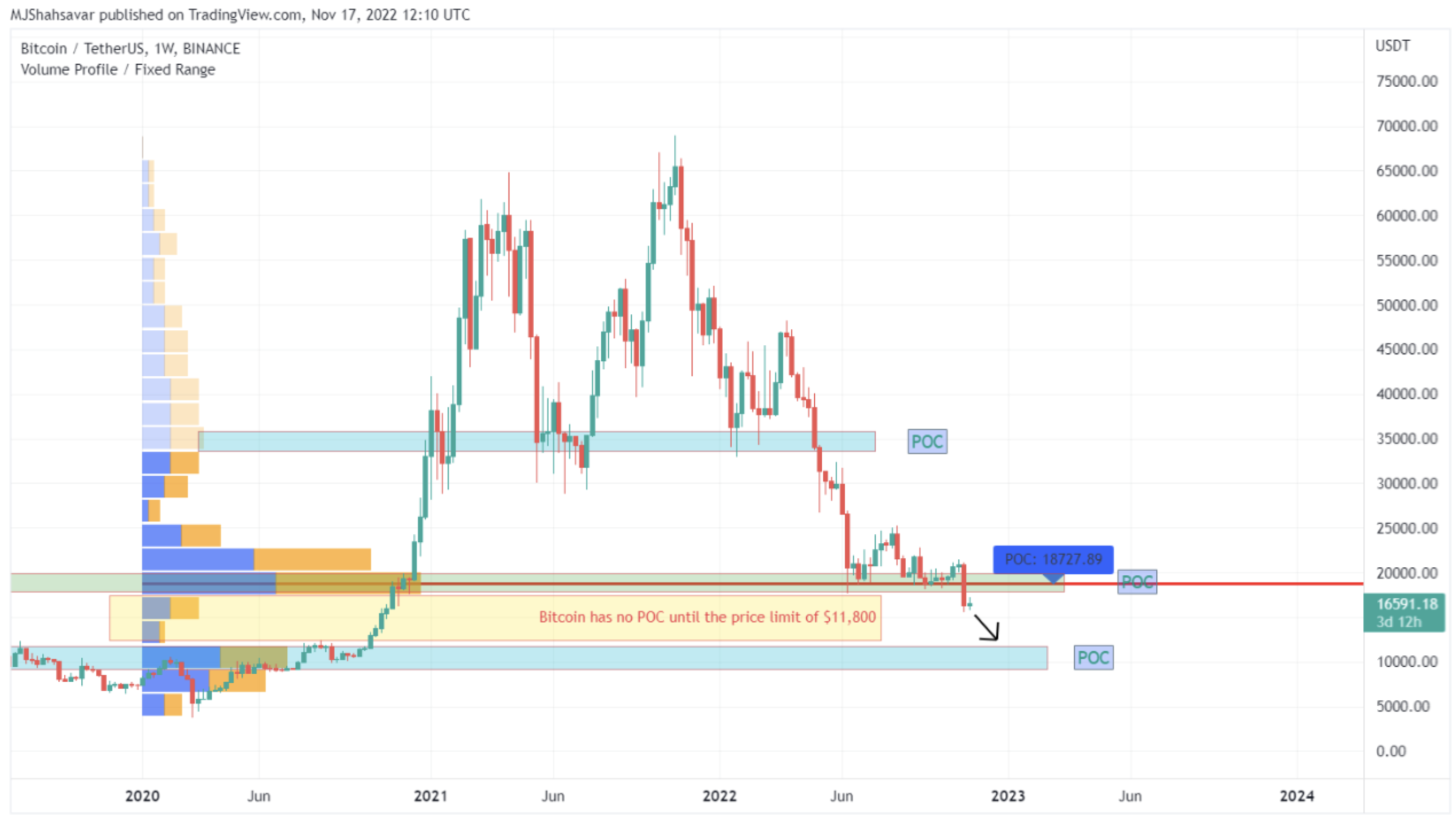 The volume profile on BTC’s long-term chart suggested that after Bitcoin lost the $19,500 support level there wasn’t much to hold onto. Seemingly, Bitcoin has no Point of Control until the price limit of $11,800.