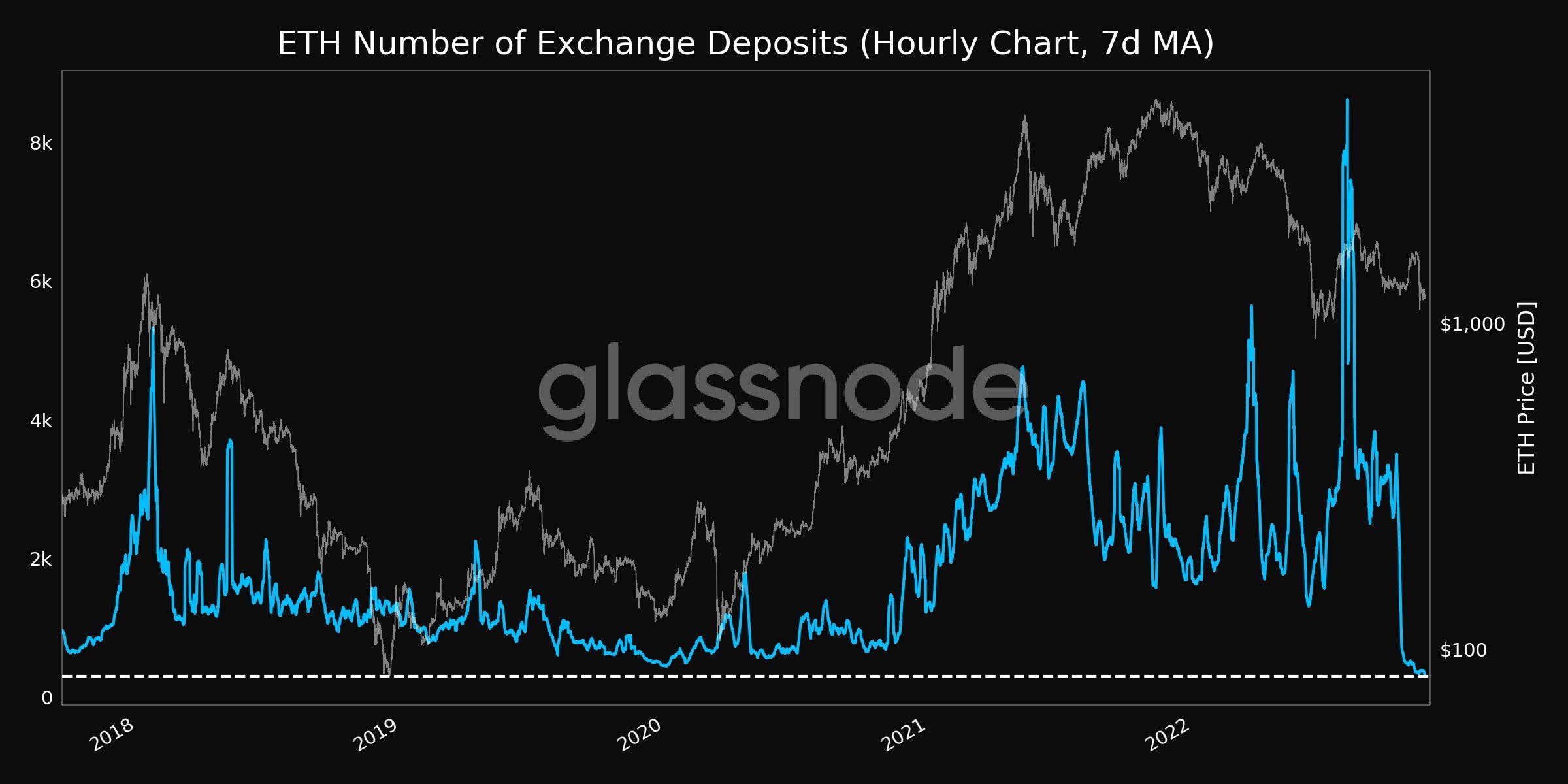 Lastly, ETH Number of Exchange Deposits (7d MA) reached a 5-year low of 303.833, which meant that not a lot ETH was being sent to exchanges despite the shaky price action.