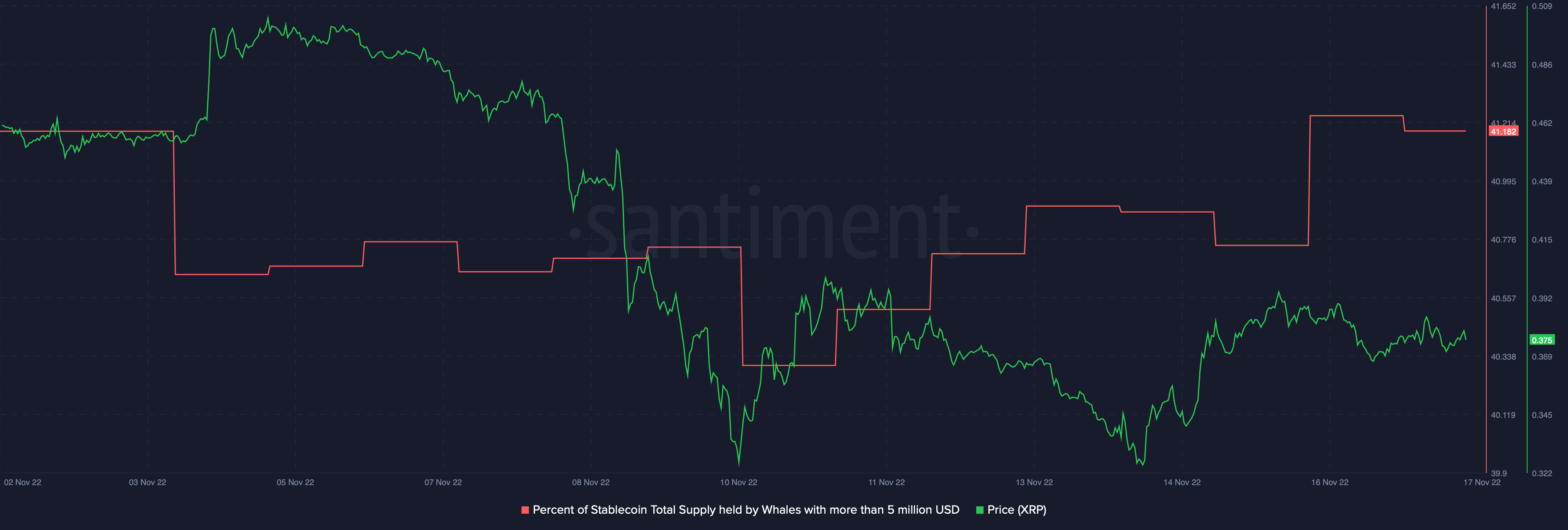 On positive turn was that percentage of total stablecoin supply held by whales with over $5 million saw a slight push. These whales had increased their holdings by close to 1% from the lower bounds.