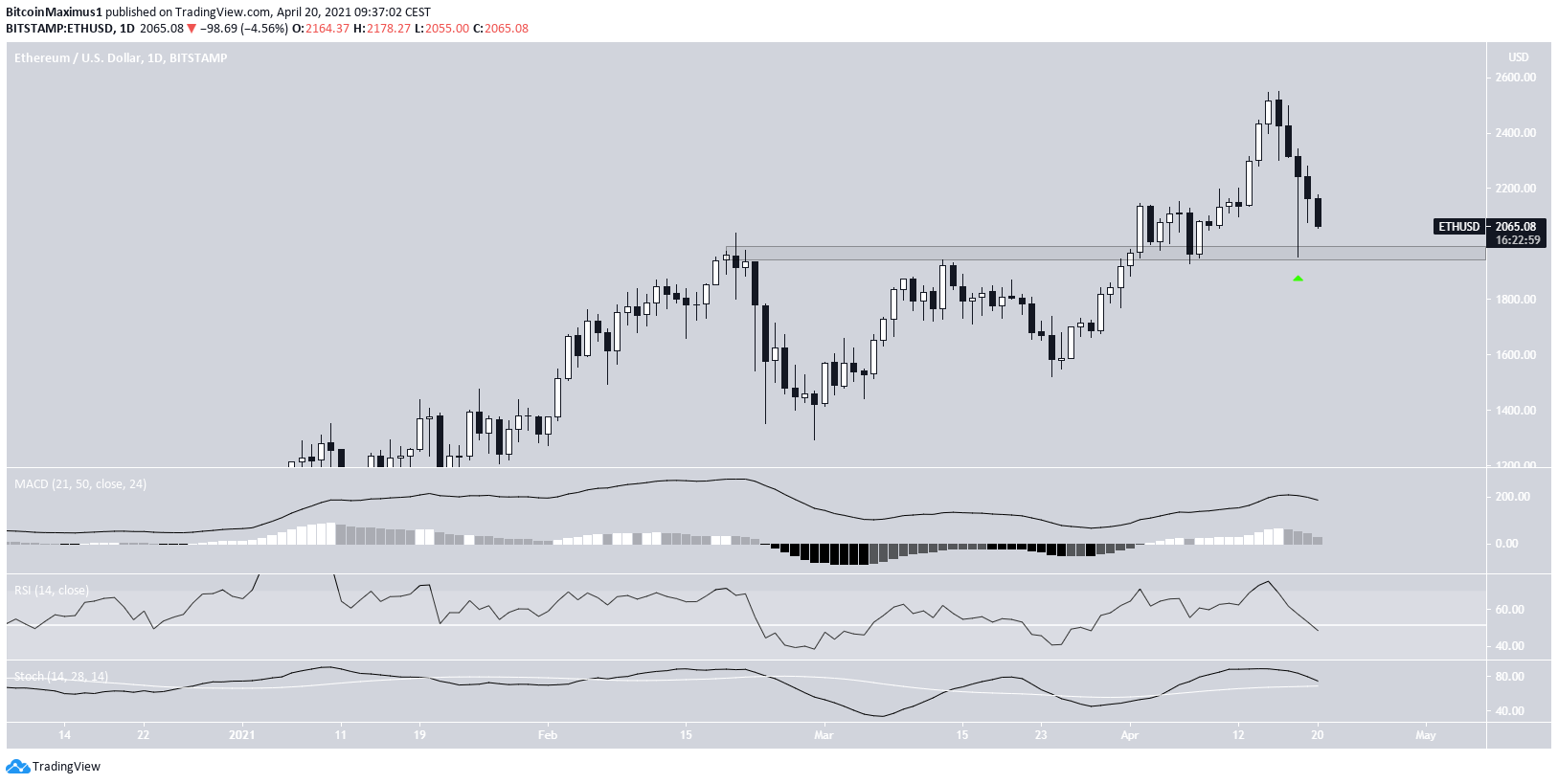 ETH has been increasing since breaking out from the $1970 area on April 2. The upward move continued until the token reached a new all-time high price of $2549.