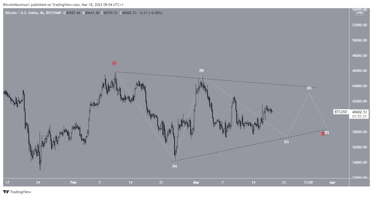 There are two main potential wave counts at play, both of which suggest that BTC is consolidating inside a symmetrical triangle.Â