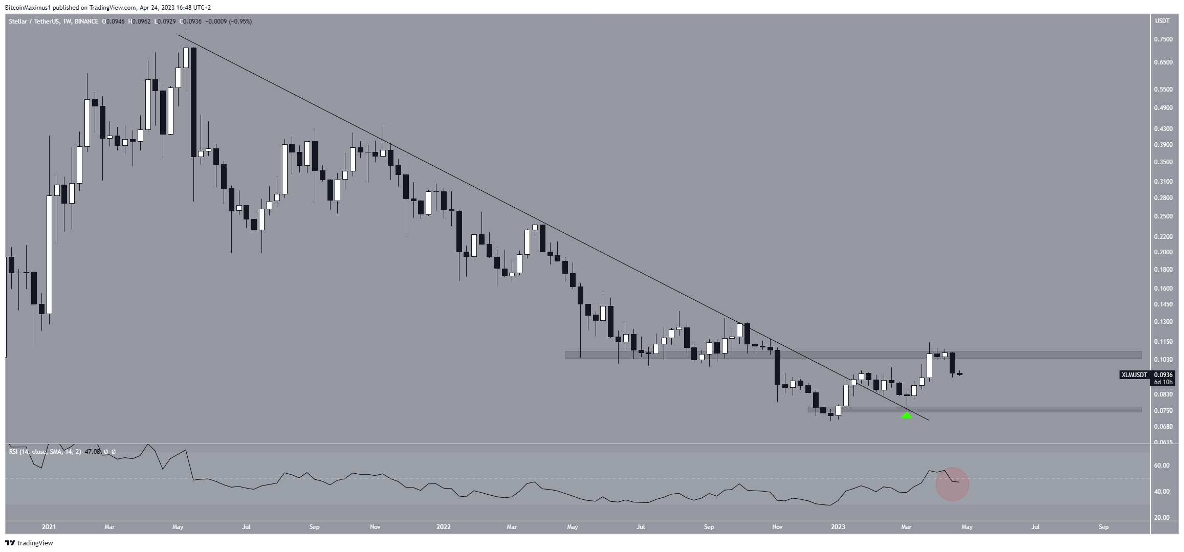 The Stellar (XLM) price fell sharply last week after a long-term resistance area rejected it.