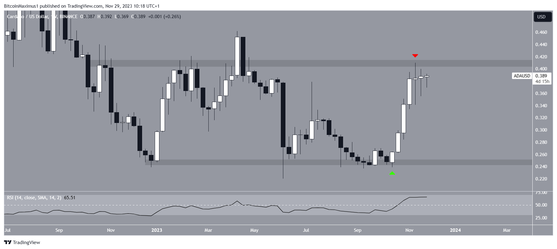 Since October, the Cardano (ADA) price has created six successive bullish weekly candlesticks.