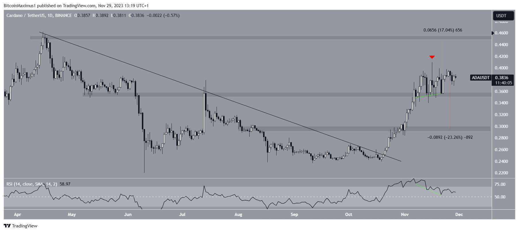 If the divergence materializes, it will lead to a 17% ADA price increase to the next resistance at $0.45.