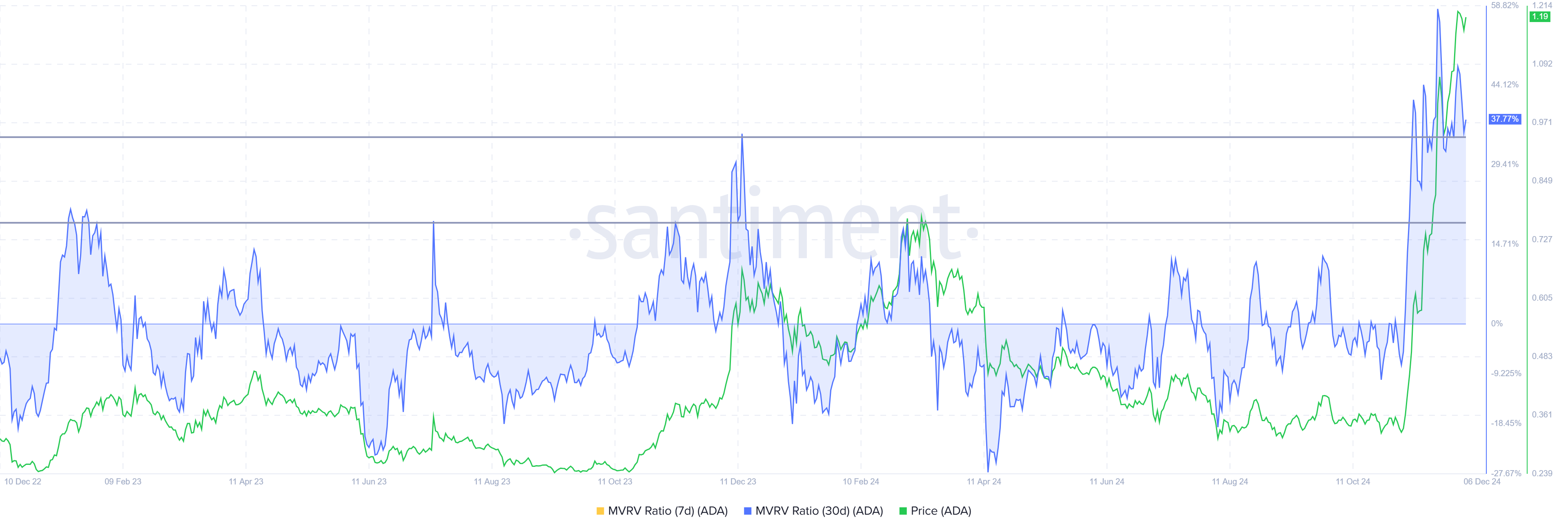 The danger zone for the MVRV ratio typically lies between 18% and 33%. When the ratio exceeds this threshold, past trends suggest that corrections are likely to follow. With ADA now exceeding these levels, the potential for a market downturn grows.