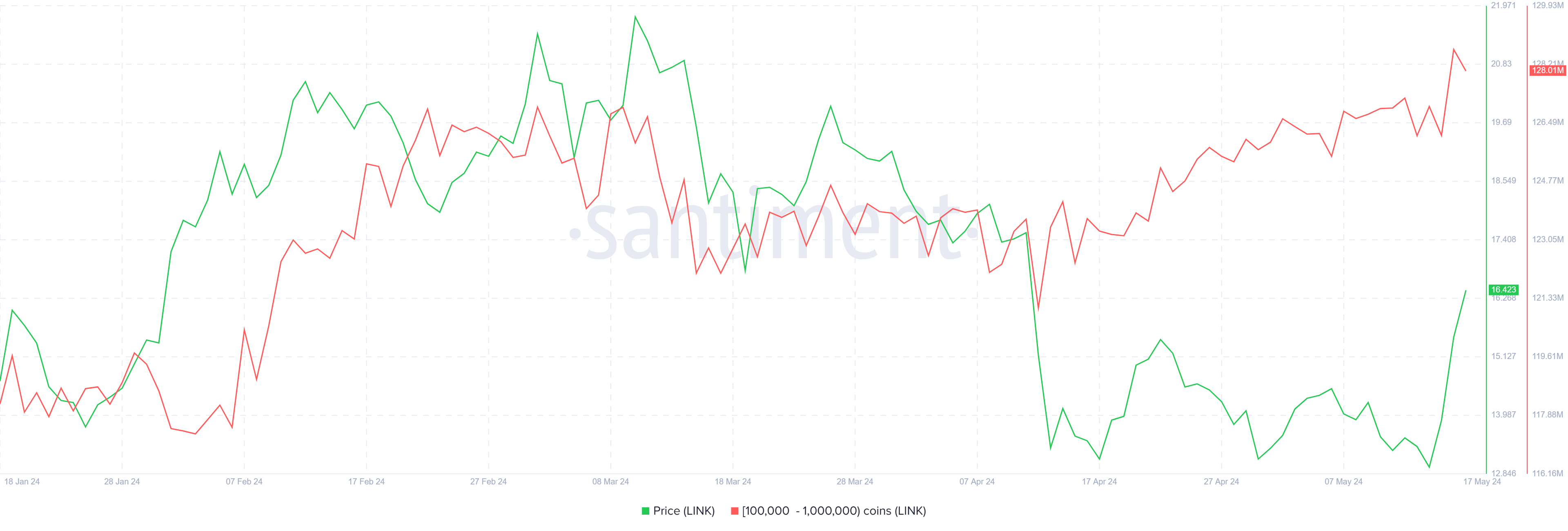 The addresses holding between 100,000 and 1 million LINK had been consistently adding LINK to their wallets. However, two days ago, they suddenly ramped up their accumulation, resulting in a rise of 2.5 million LINK. This $41.5 million supply is evidence that whales are looking to sell.