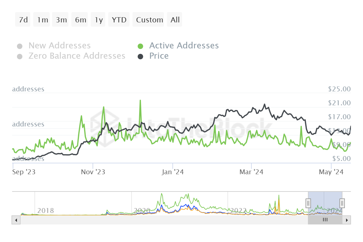 The average active addresses on the network have dropped from 4an average of 4,400 in April to 2,000 at the moment. LINK holders stepping away from the network suggests that they were not anticipating the rally, making the rise likely less impactful for these investors.