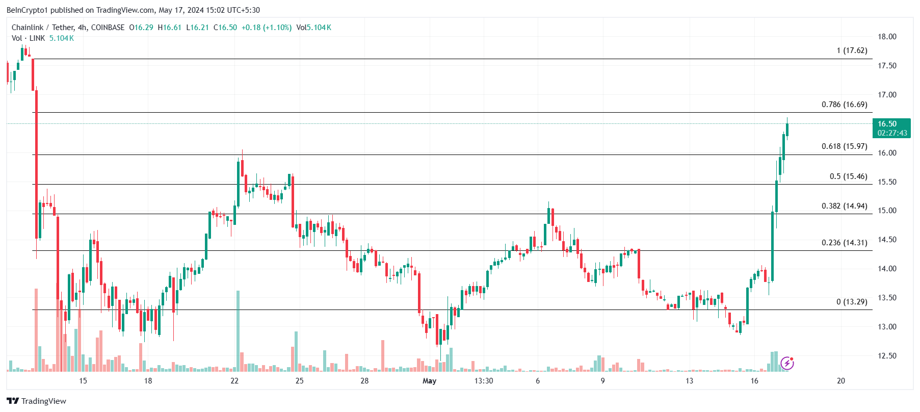 On the other hand, if LINK bounces off the 61.8% Fib level, it could continue the uptrend. This would enable Chainlink’s price to breach the 78.6% Fib level at $16.6, invalidating the bearish thesis.