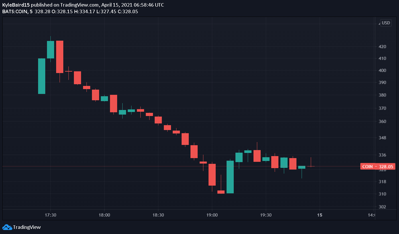 The stock went as high as $429, with investors flocking to the first Bitcoin trading company to go public. The listing has been the talk of the town, with both traditional and crypto investors paying close attention to it.