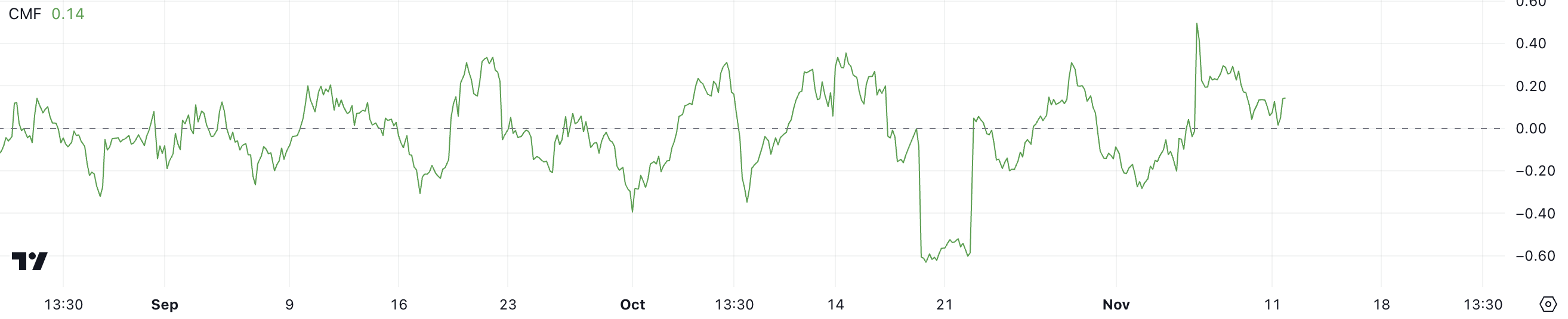 The Chaikin Money Flow (CMF) is an indicator that measures the volume-weighted average of accumulation and distribution over a specific period.