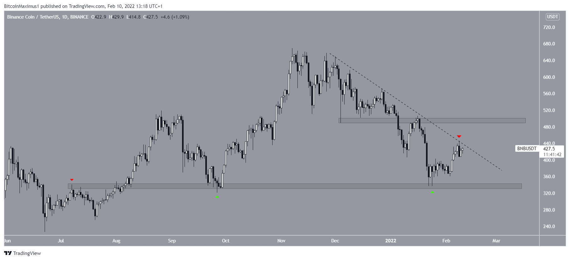 Binance Coin (BNB) has been increasing since Jan 24, when it bounced at the $335 horizontal area. This was the second time BNB bounced at this area, after doing so on Sept 2021.