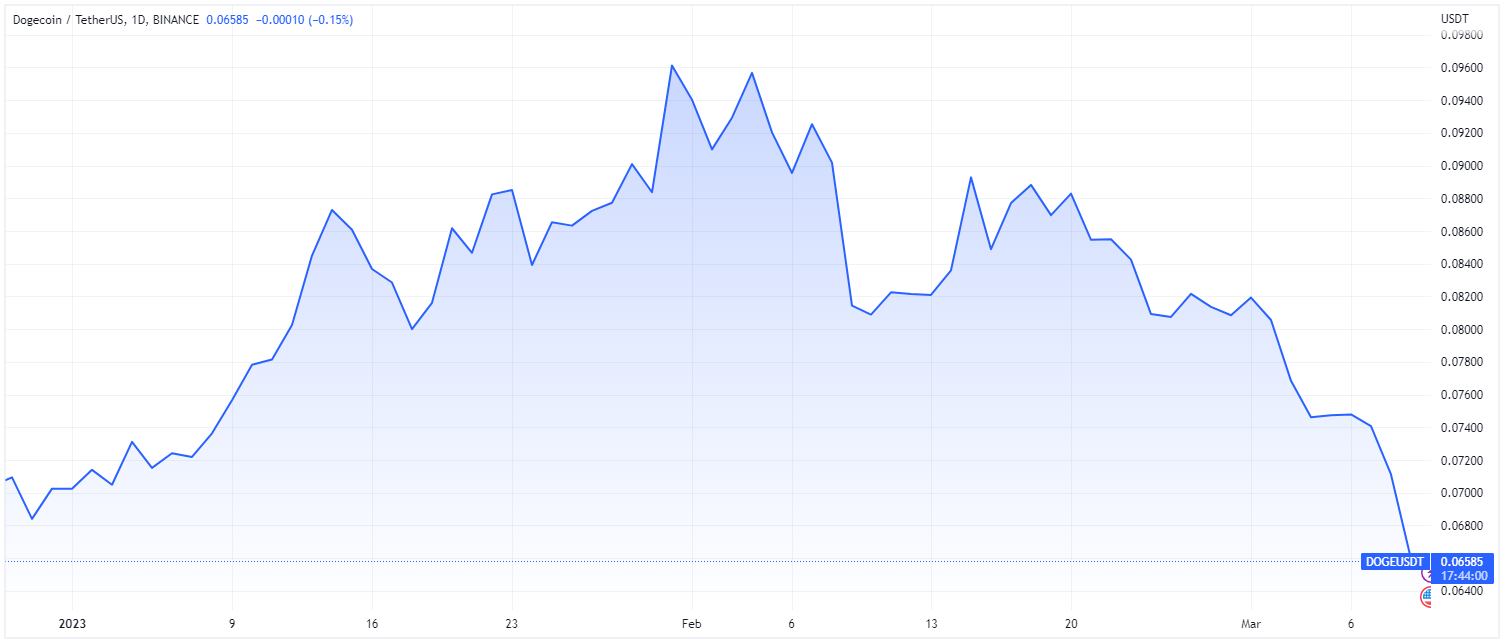 Dogecoin, the original meme coin, has fallen to $0.065, its lowest value of the year. Similarly, XMR has also hit year-to-date lows. Meanwhile, ALGO is teetering close to its 2023 low.