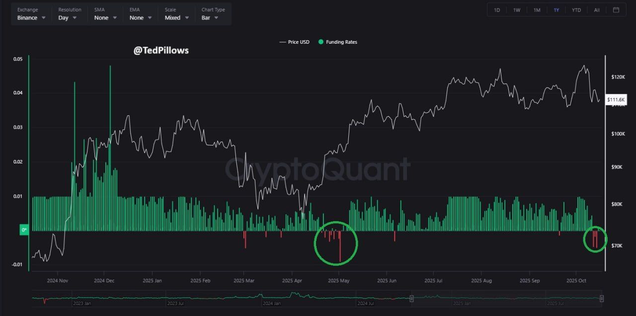 Analyst Ted also noted that Bitcoin’s funding rate on Binance recently turned negative, meaning traders holding short positions now pay fees to those holding long positions.
