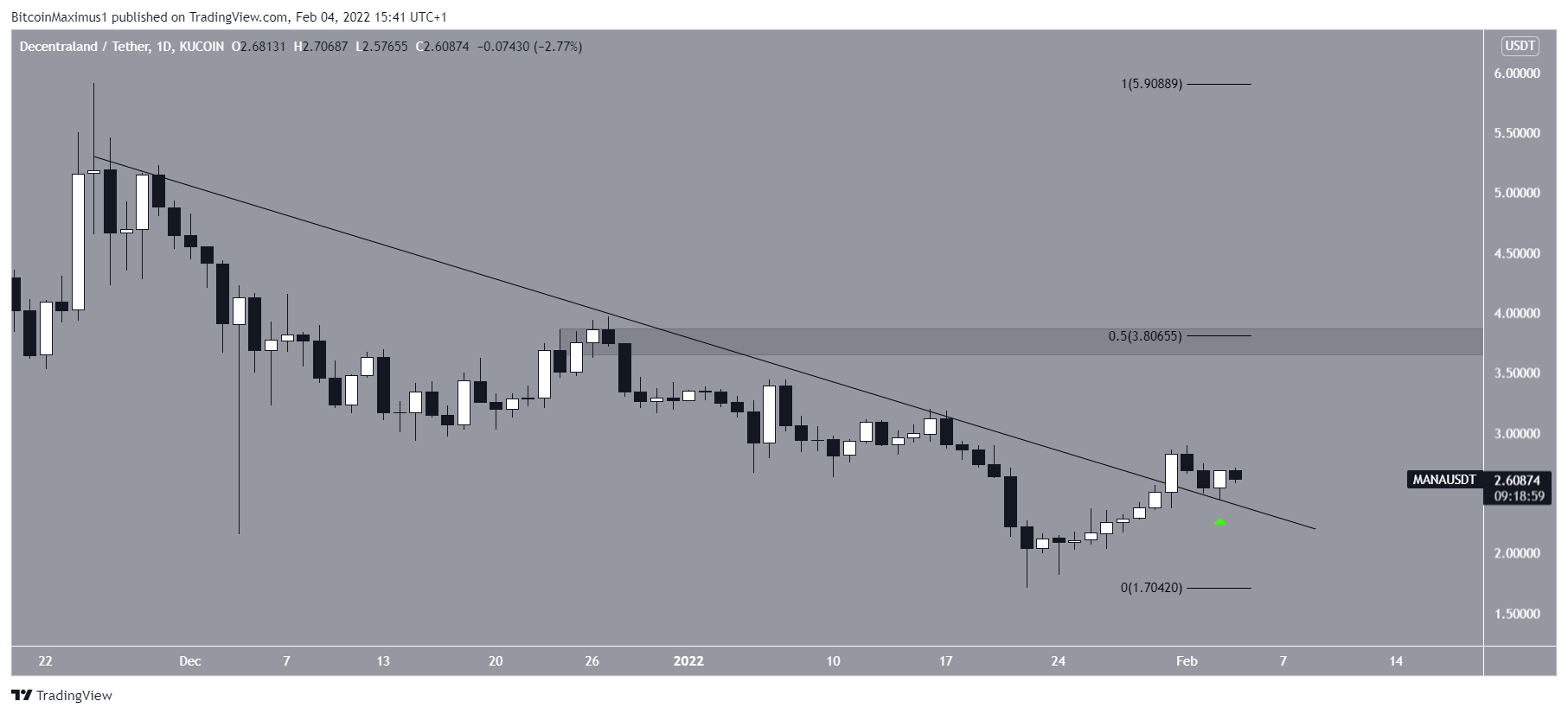 Since November 25, MANA had been decreasing alongside a descending resistance line, where it reached an all-time high price of $5.91.