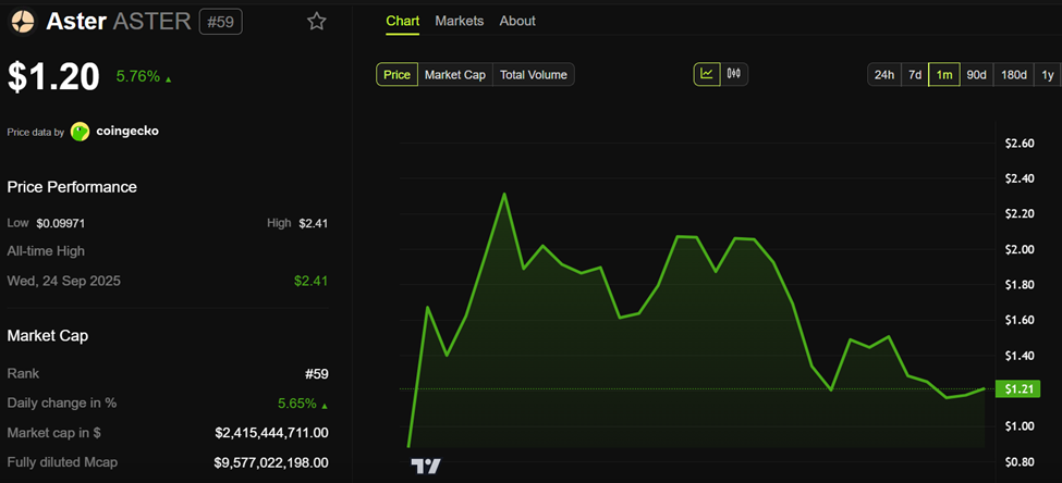 Still, the move has had a significant effect on the ASTER token price, which has risen by over 5% in the last 24 hours keeping the DEX token in pace with broader market recovery.