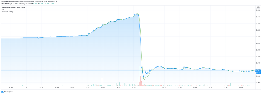 Soon after this announcement, the price of DMM’s governance DMG tokens plummeted from about $0.50 to $0.10, an 80% drop.