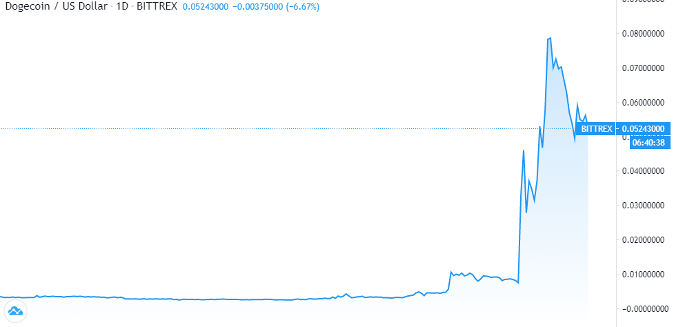 At the end of January, Musk had likely contributed a 420% plus increase in the coin, leading to its all-time highs around $0.087.