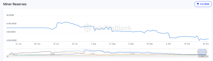 Miners Reserves tracks real-time changes in balances held by recognized node validators and mining pools. The 40 million DOGE accumulated by the miners over the past week is worth approximately $2.8 million at the current market prices.