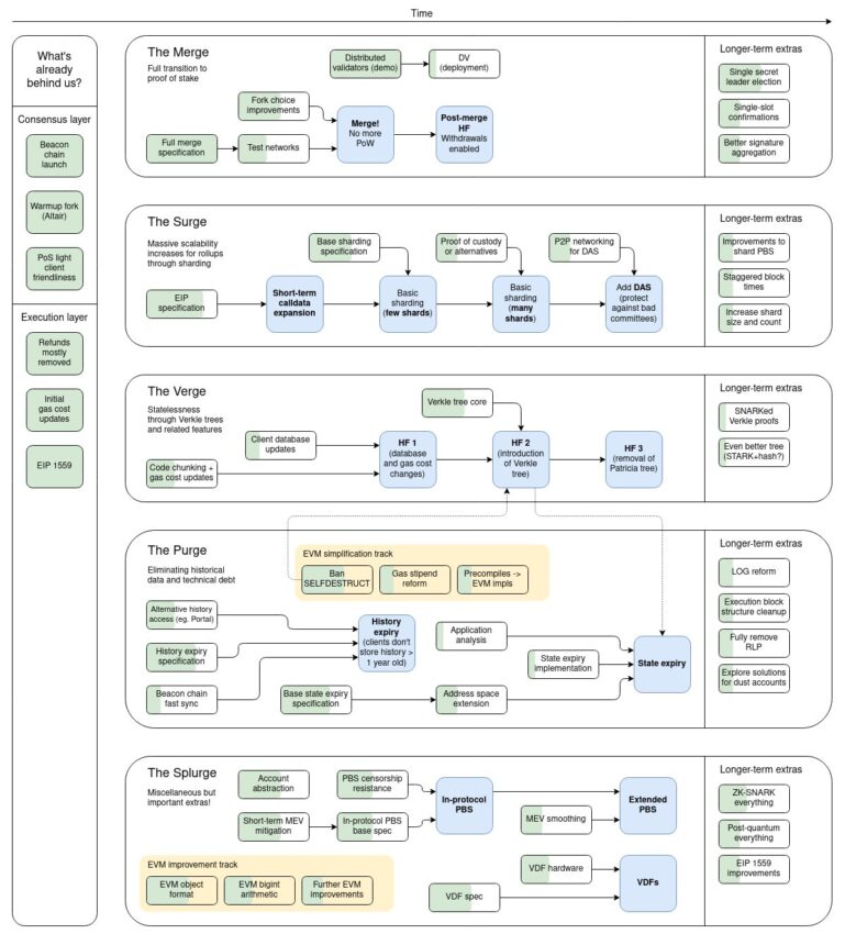 Ethereum successfully ‘Merged’ on Sept.15, but more upgrades are coming to the network: the Surge, the Verge, the Purge, and a Splurge. As a whole, the upgrades will each add a new layer of scalability and security to Ethereum proof-of-stake (PoS).