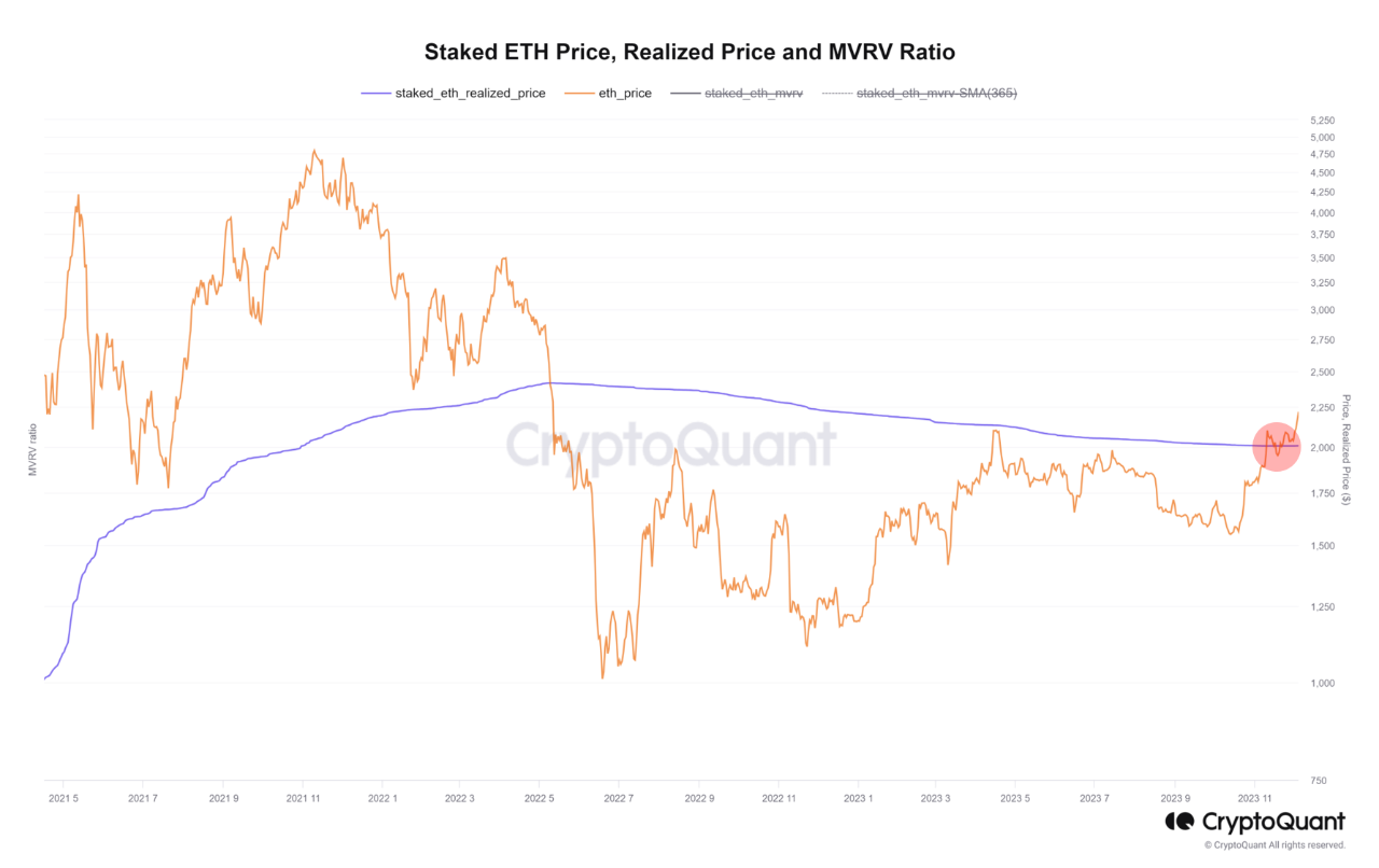 According to the Head of Research at CryptoQuant, the average unit price of ETH staked on the Ethereum network recently broke through the $2,000 mark. He noted: