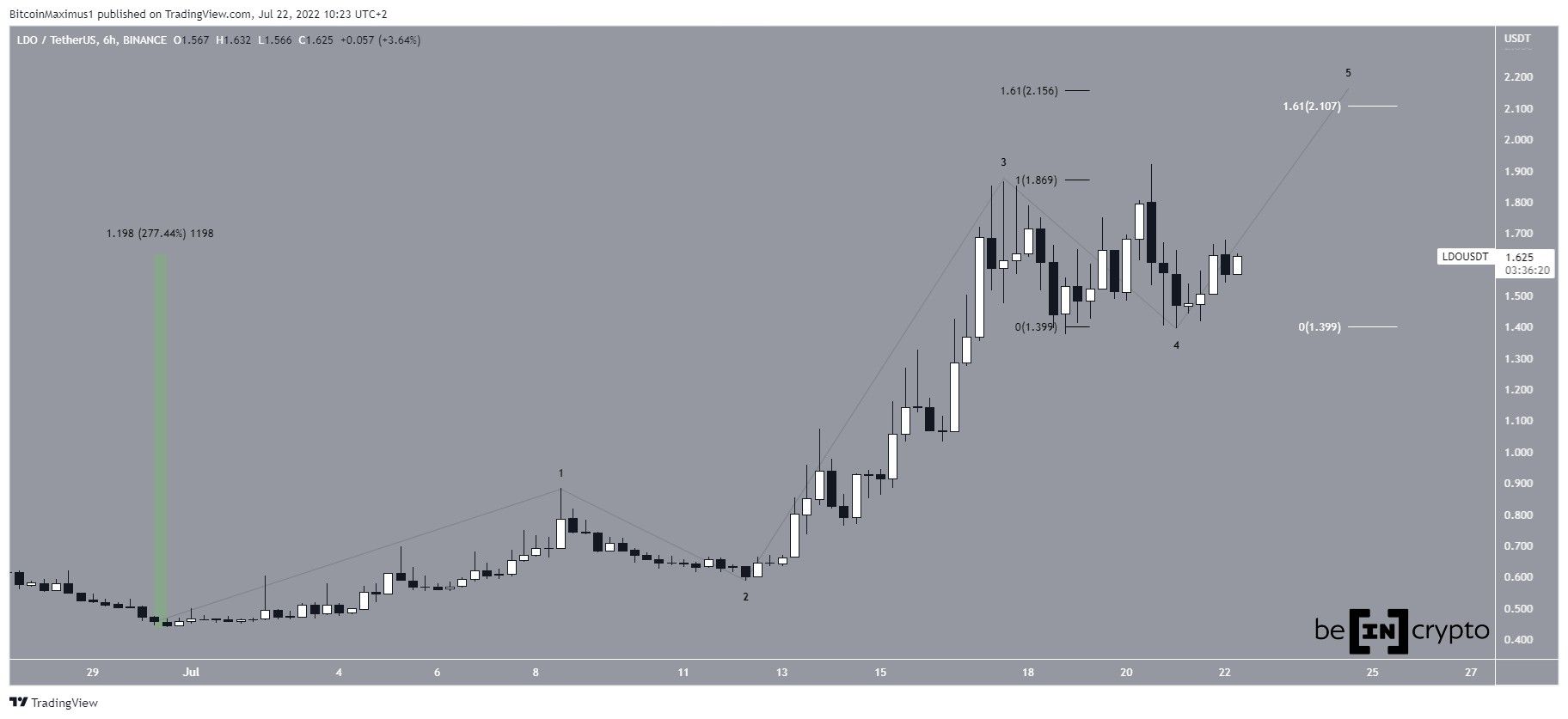 The entire increase resembles a five-wave upward movement, in which LDO is currently in wave four.